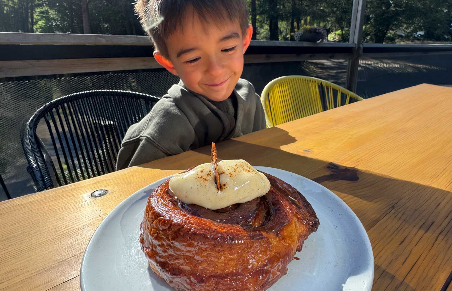 We stayed at WOODS on Pender in the “motel,” which was comfortable, clean, and cozy, and worked perfectly since we spent most of our time out exploring. Glamping in one of their Airstreams is also amazing and so fun with kids if you can snag one. We’ve stayed there before too and loved it! The Woods has a small on-site restaurant with fantastic pizzas and cocktails for dinner. And in the morning, they serve great coffee, pastries including cinnamon buns that are almost worth the trip to Pender alone!